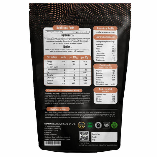 Vitaminnica Vita Gold Whey Protein - Irish Cholocate Flavour| 900gms